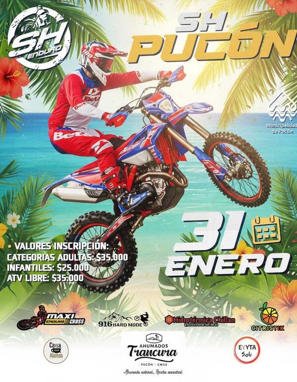 Prepárate para vivir una jornada intensa de enduro en uno de los escenarios más espectaculares del sur de Chile. El SH Pucón Enduro reúne a pilotos adultos, infantiles y ATV en una experiencia cargada de técnica, desafío y pasión por el off-road. Un evento pensado para competir, disfrutar y compartir la cultura enduro en un entorno natural único, con trazados exigentes y un ambiente familiar que celebra la velocidad, el control y el espíritu aventurero.