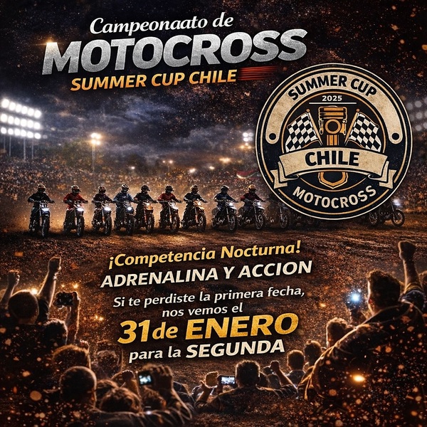Vuelve el rugir de los motores con la segunda fecha de la Summer Cup Chile. Prepárate para una noche de motocross extremo, saltos de infarto y toda la acción que solo una competencia nocturna puede ofrecer. ¡No te quedes fuera del evento más electrizante del verano