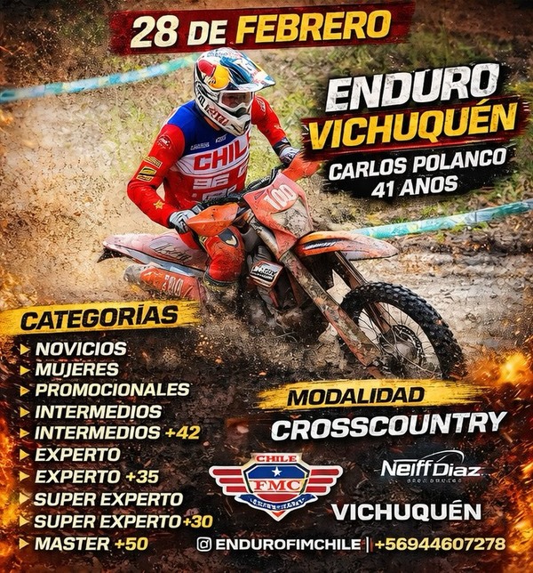 Prepárate para el desafío definitivo en la Modalidad Cross Country. Te invitamos a vivir una jornada de pura adrenalina en los paisajes de Vichuquén, donde la técnica y la velocidad se encuentran en una pista diseñada para los verdaderos amantes del barro. Con categorías que van desde Novicios y Mujeres hasta Súper Expertos y Máster +50, este evento promete ser una experiencia épica para pilotos de todos los niveles.