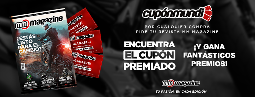 Consíguela al realizar tu compra en cualquiera de nuestras sucursales motomundi, encuentra el cupón ganador, y canjea fantásticos premios. Además podrás ganar desde un 15, hasta un 25% de descuento, utilizable en cualquiera de tus compras. MM Magazine “tu pasión, en cada edición”
