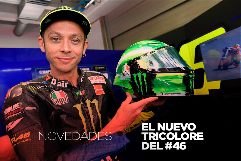 Como ya nos tiene acostumbrados desde hace 20 años, Valentino estrenó un nuevo diseño de casco, inspirado nuevamente en la bandera nacional de su país. Al igual como el año pasado y el año 2002, la tricolor ha sido la paleta a seguir por los diseñadores del casco especial que Rossi estrena con motivo del Gran Premio de Italia.