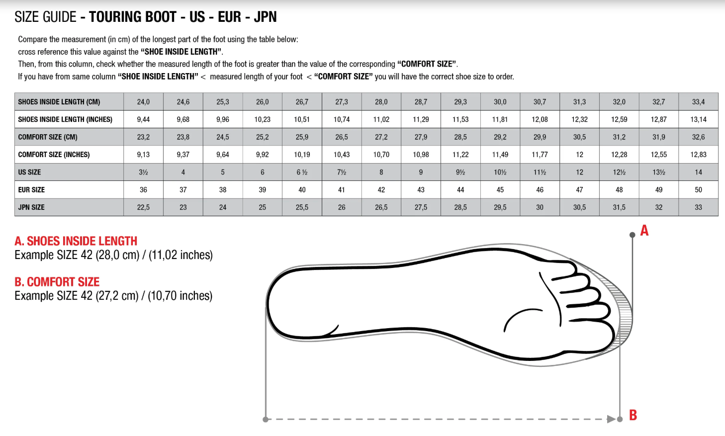 Características • Zonas flexibles de empeine avanzado y acordeón en el tendón de Aquiles para una comodidad, control y soporte superiores.• Apertura amplia para mayor conveniencia con cierre combinado de polímero resistente y velcro para permitir una amplia gama de ajustes de ajuste de la pantorrilla.• El sistema de cierre cuenta con hebillas de aluminio delgadas y reemplazables para seguridad, con ajustes de memoria y sistema de bloqueo de liberación rápida.• El cuello superior de la bota y el forro interno están construidos con malla transpirable para mayor comodidad.• Plantilla de espuma EVA anatómicamente perfilada y extraíble.• Compuesto de goma exclusivo de Alpinestars para la combinación óptima de comodidad y agarre.• Ventilación lateral para un mayor flujo de aire.