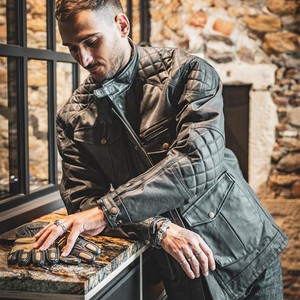 Exterior de algodon encerado con detalles de piel